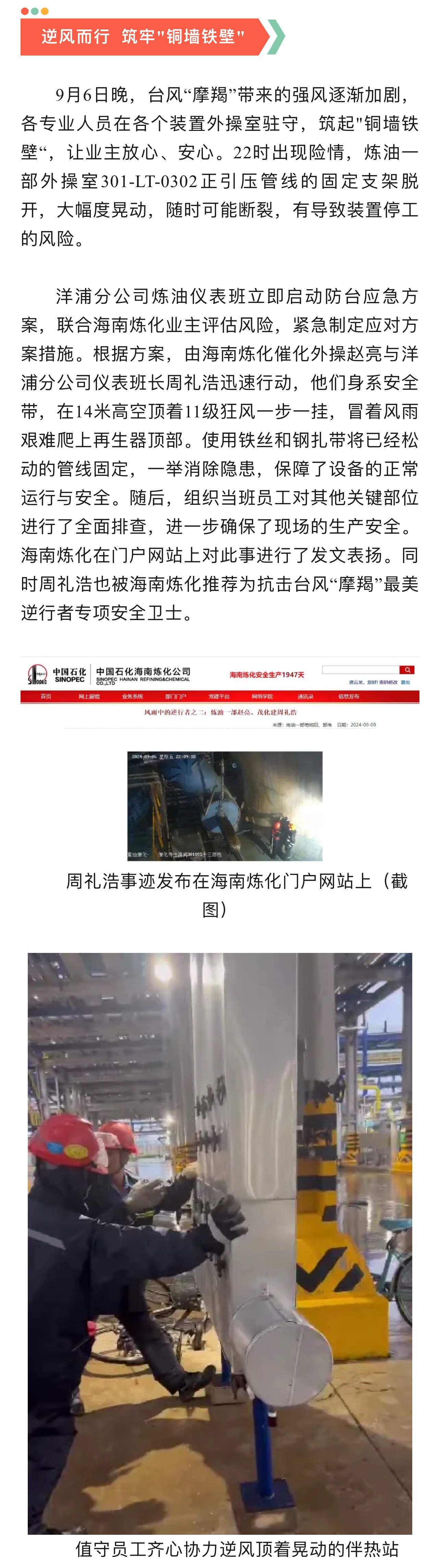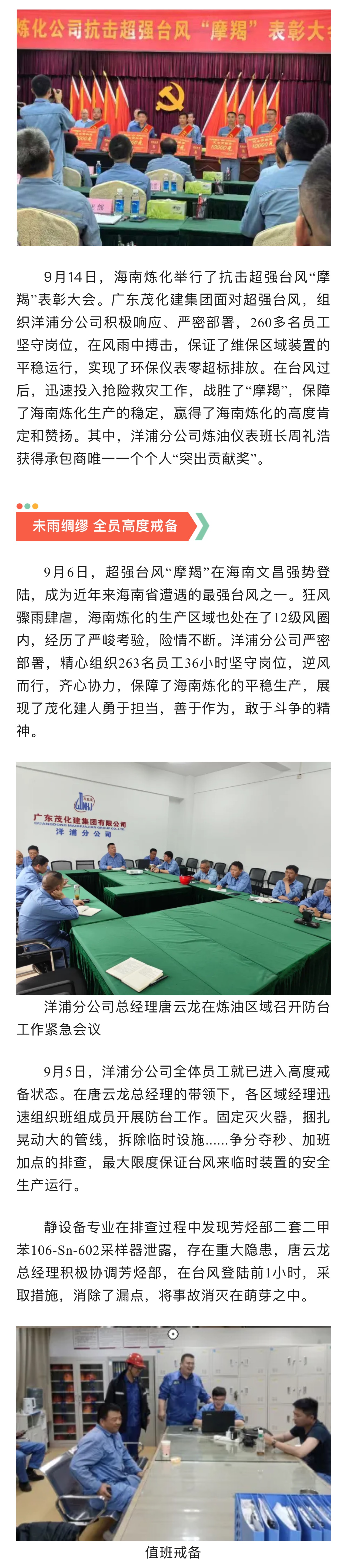 茂化建洋浦分公司抗擊超強臺風(fēng)"摩羯”獲業(yè)主高度表揚
