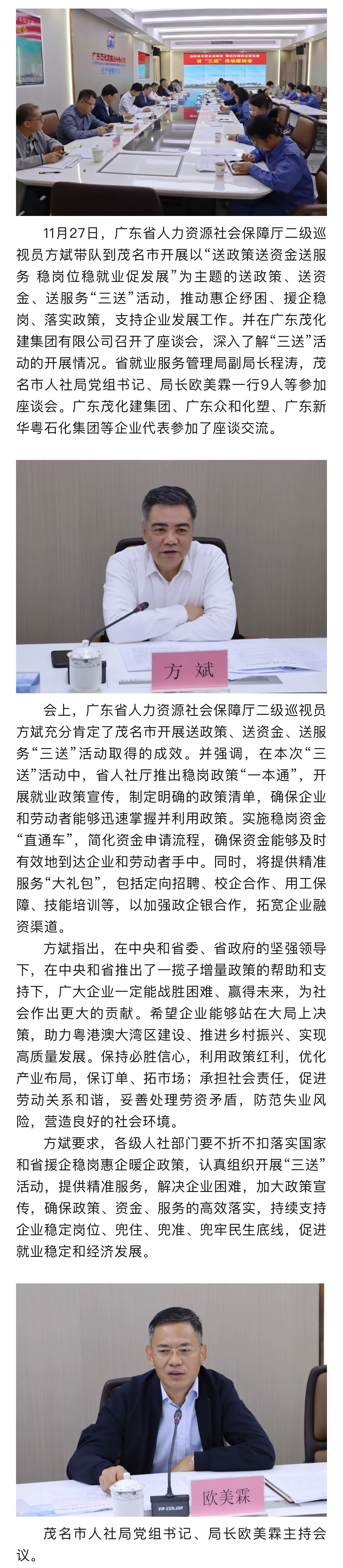 省人社廳“三送”活動座談會在茂化建舉行