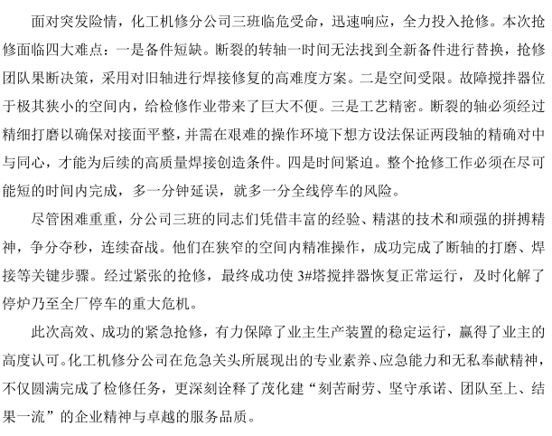 聞令而動!化工機修分公司高效搶修守護(hù)業(yè)主生產(chǎn)生命線