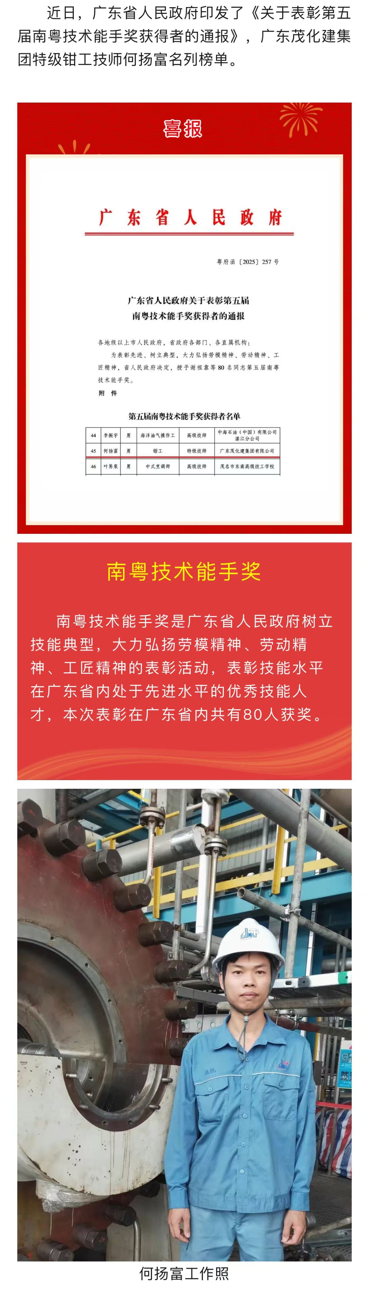 喜報(bào) | 何揚(yáng)富被授予第五屆“南粵技術(shù)能手獎(jiǎng)”