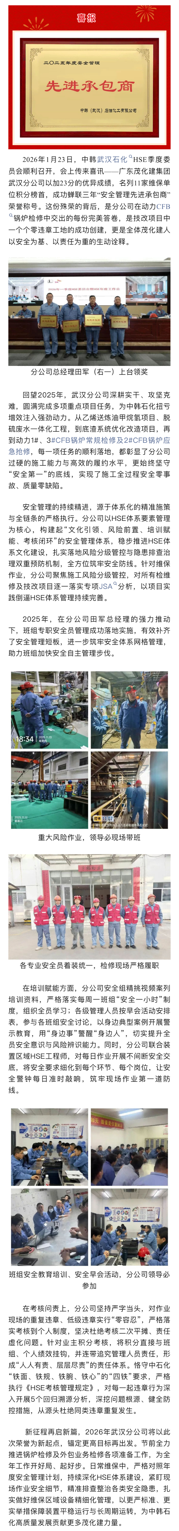 喜報(bào) | 榮獲中韓(武漢)石化"2025年度安全管理先進(jìn)承包商”稱號